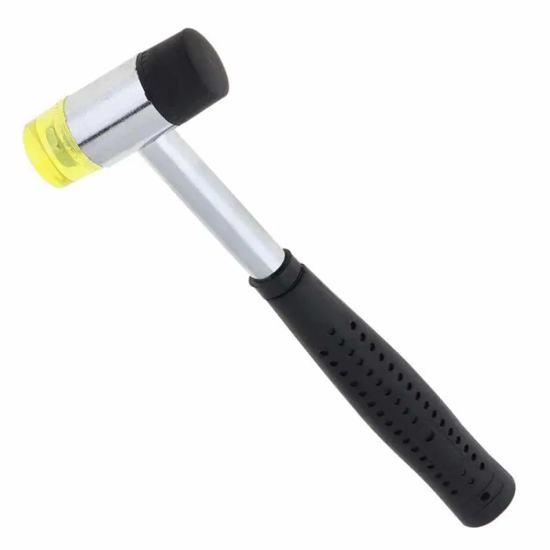 El martillo de instalación de 25 mm es una herramienta ideal para trabajos donde se necesita precisión sin dañar las superficies. Viene con cabezales de golpe suave, uno en material plástico amarillo y otro en goma negra, perfectos para ajustes finos, ensambles y trabajos de armado.